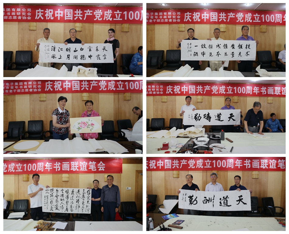 为庆祝中国共产党成立100周年,回顾党的奋斗历程,歌颂美好新时代,助力公司企业文化建设。6月24日,云联商城、烟台市老年书画研究会、烟台市老干部志愿者协会共同举办“庆祝中国共产党成立100周年联谊书画笔会”。本次活动共有18位县处级退休老干部书画家参加。