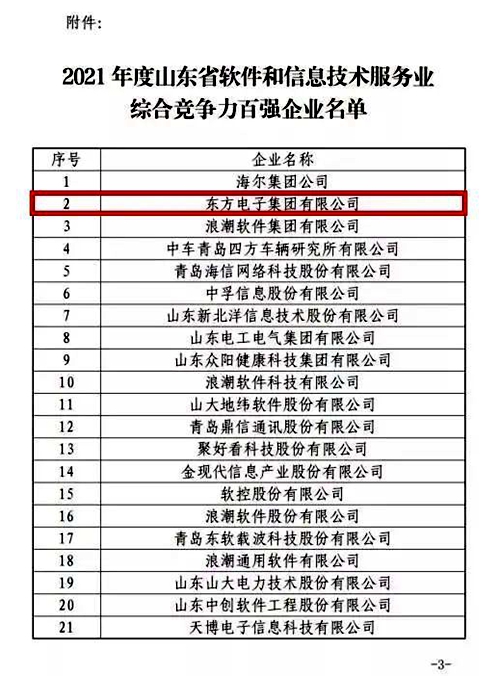 日前,山东省软件行业协会、山东软件行业产教联盟联合发布了“2021年度山东省软件和信息技术服务业综合竞争力百强企业”。我公司入选2021山东软件企业百强第二名,海颐软件亦同时入选山东软件企业百强第二十三名。